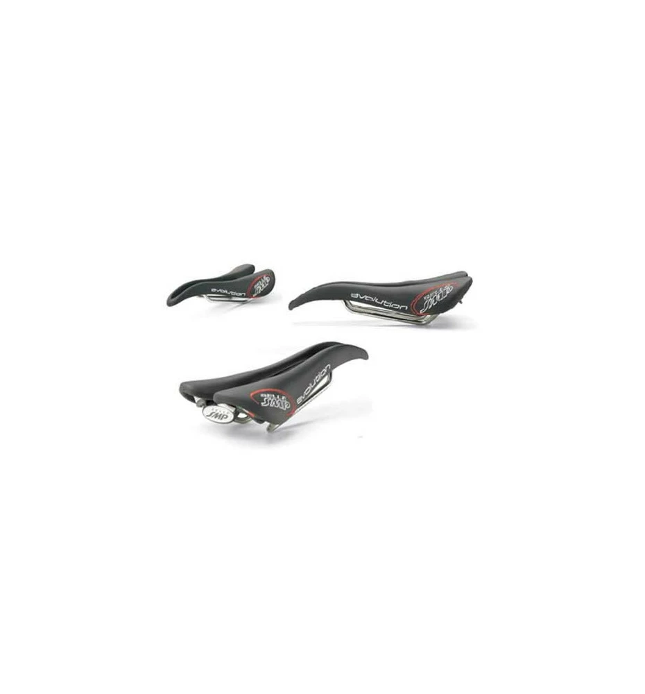 SMP Evolution ergonomique SMP. Le confort des selles SMP est exceptionnel. Comme les selles de la gamme SMP telles que la Gliter ou la Composit, la selle Evolution bénéficie des caractéristiques brevetées comme le bec original du devant de la selle, dessiné pour offrir une base plate pour les efforts assis quand on doit affronter de longues montées et comme aide dans les descentes, en offrant un contrôle plus grand du vélo au niveau des cuisses.